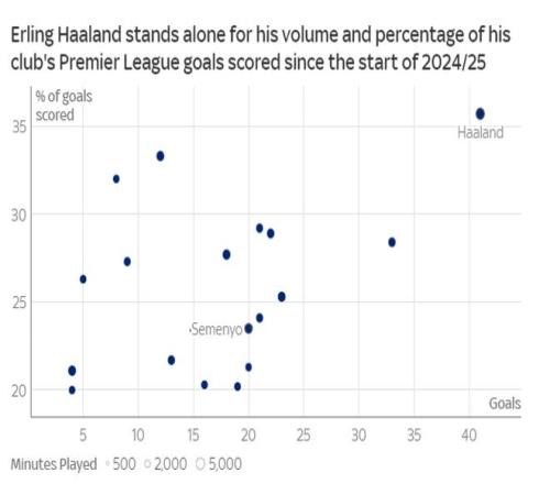 盡管哈蘭德狀態(tài)上佳,但曼城也在冬窗未雨綢繆。記者隆-沃克分析,“塞梅尼奧可以即插即用,已經(jīng)在英超證明了自己,即將進(jìn)入巔峰期,而且身價(jià)并不高。他為曼城提供的,正是解決對(duì)哈蘭德進(jìn)球過于依賴問題的答案?!?/p>